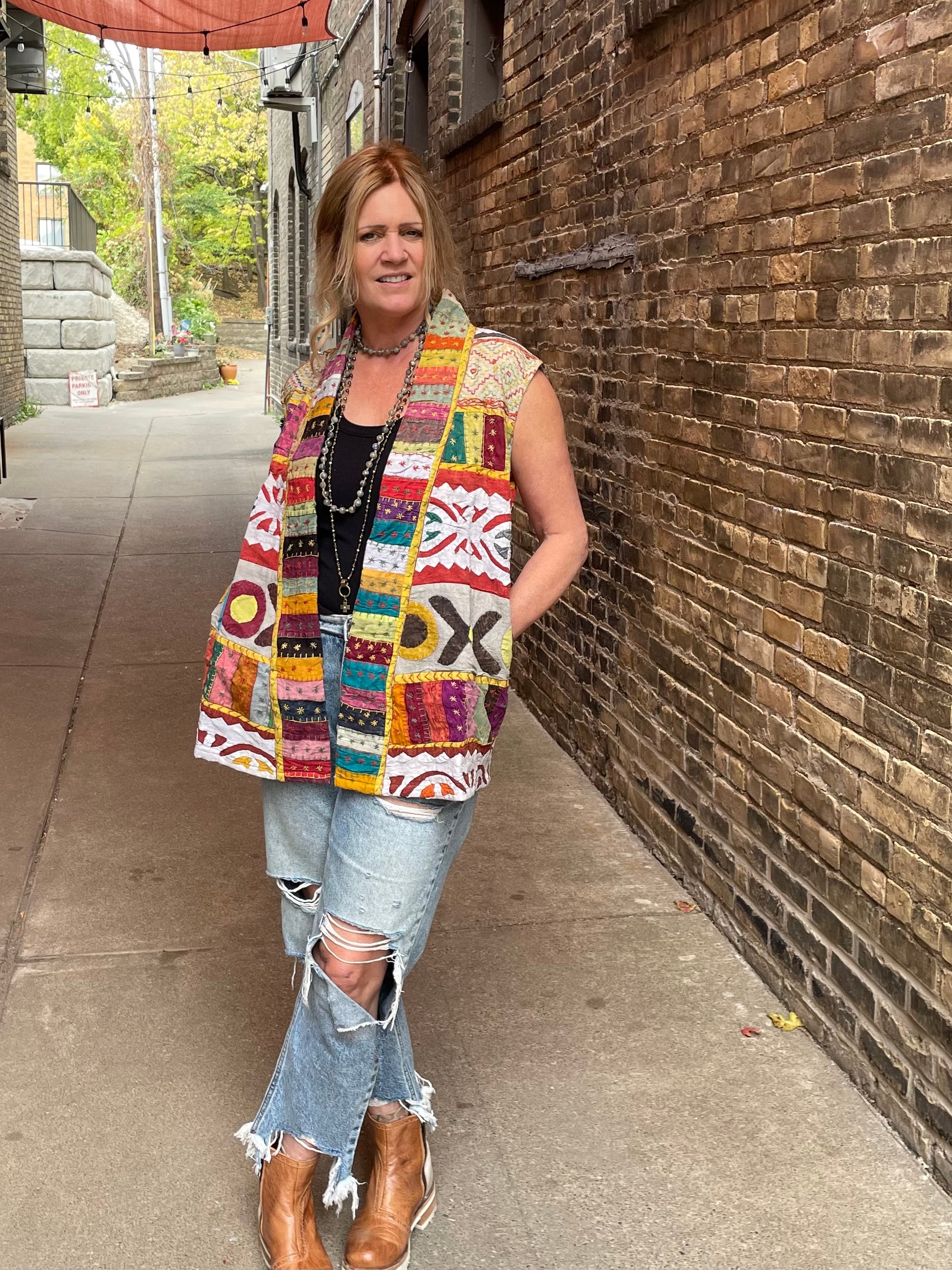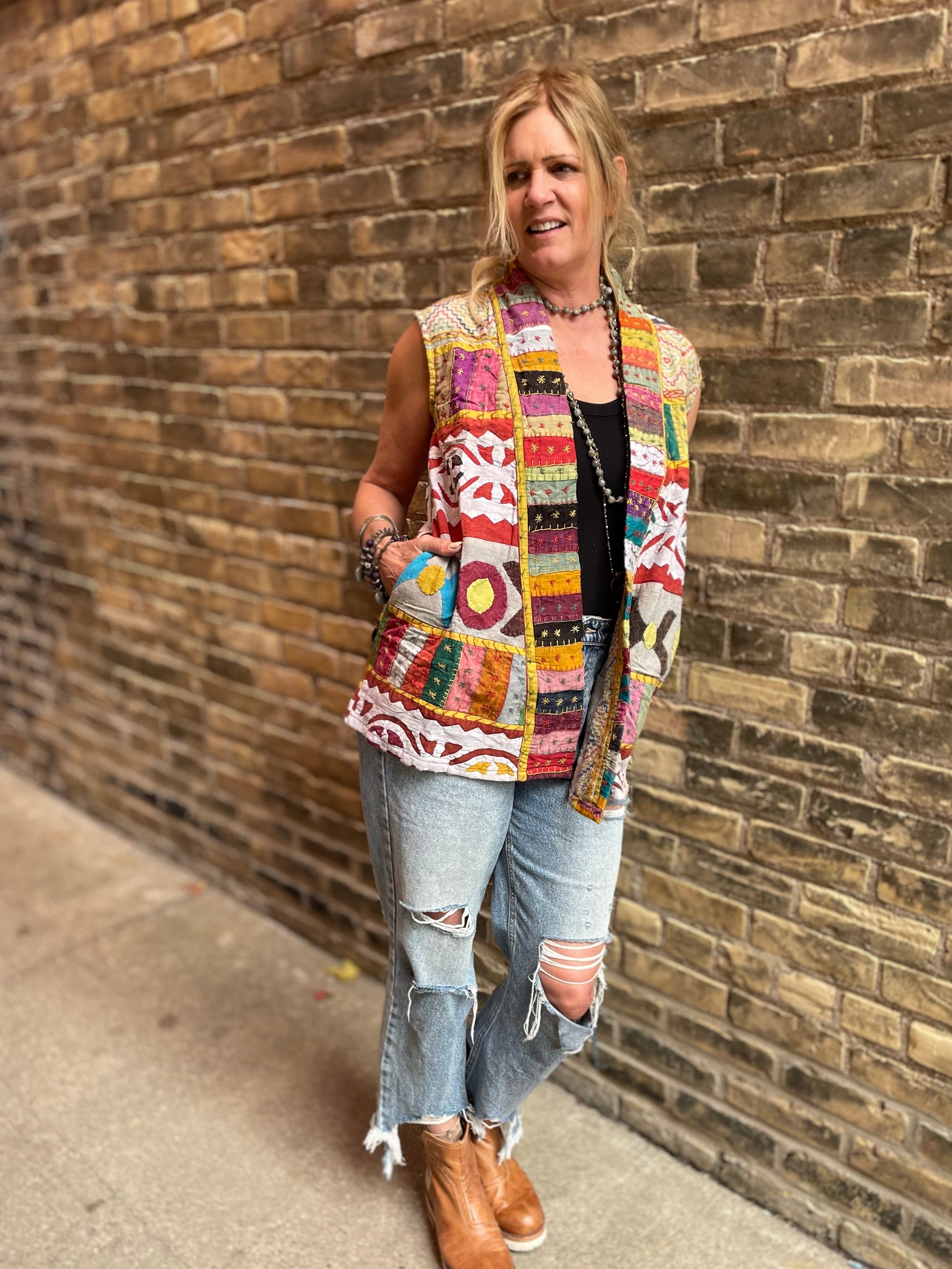 Dakota Patchwork Hand Stitched Kantha Vest - Style 1
